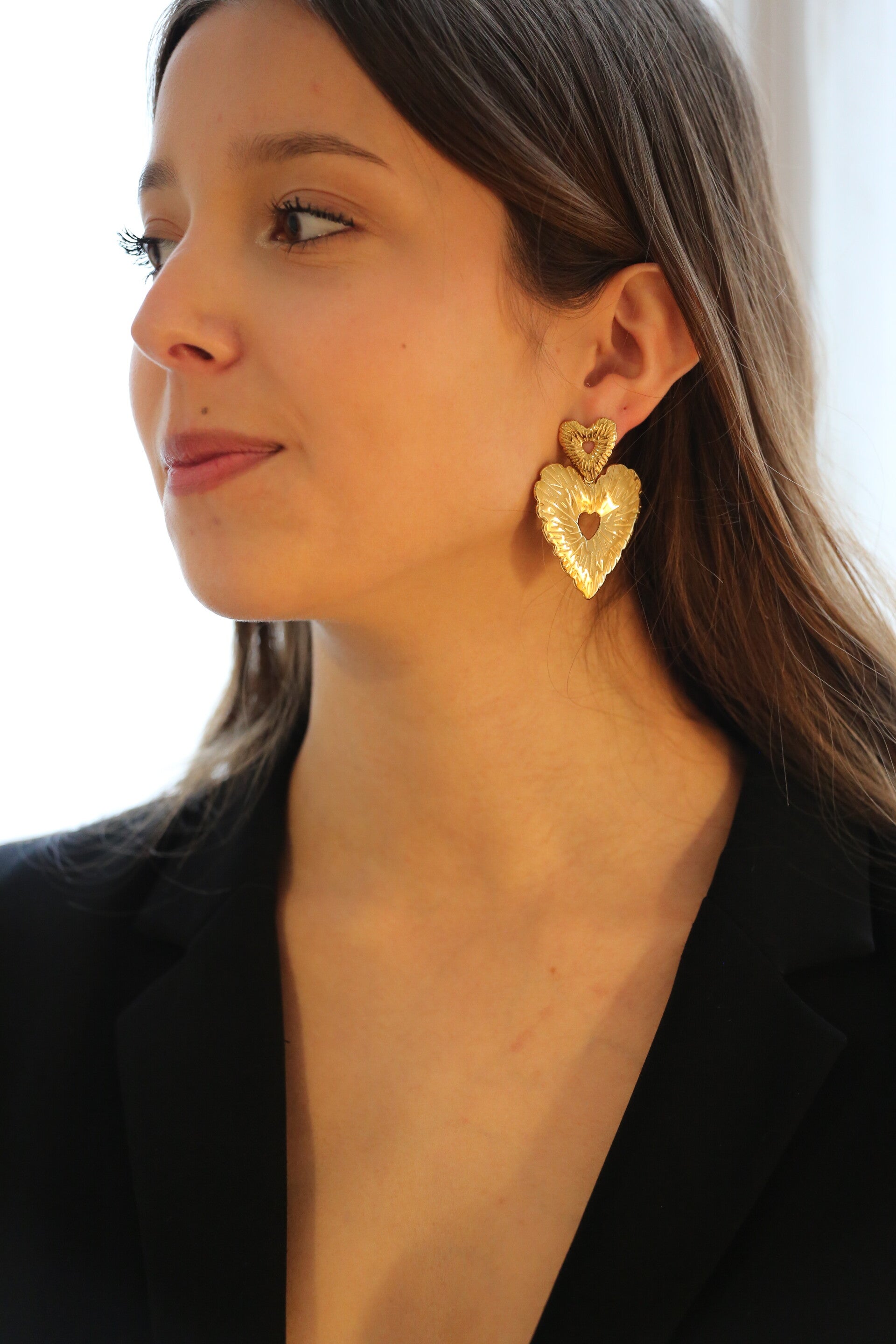 Découvrez nos boucles d'oreilles en forme de cœur, entièrement en acier inoxydable.