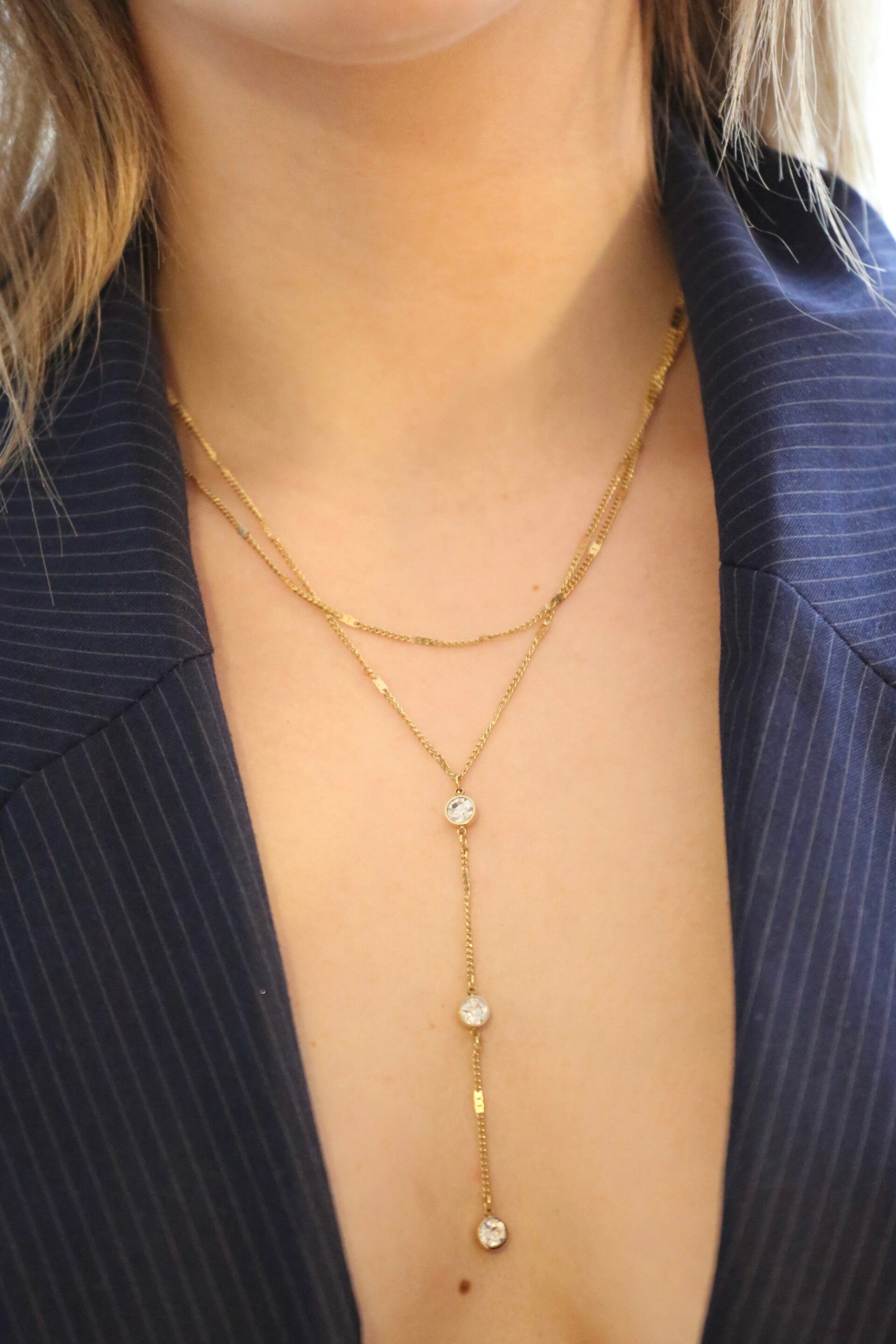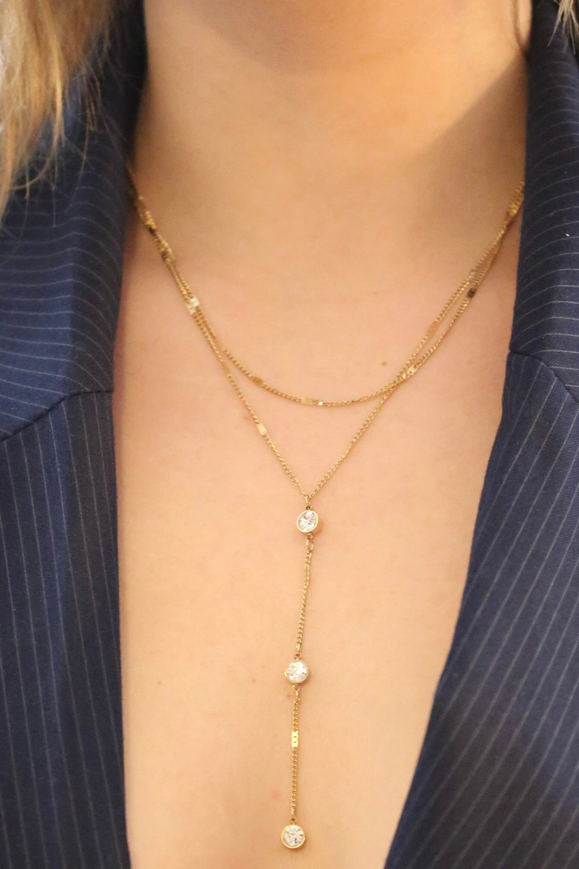 Le collier Carolina est entièrement en acier inoxydable. Sublime et original, ce collier double chaîne mets en avant votre féminité.